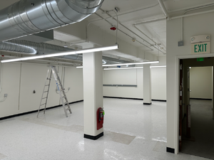 The first phase of the construction involved the refurbishment of M200, where walls were removed and new appliances installed. Partway through this phase, SSI's downstairs lab was briefly relocated to the south side of the basement, while construction began on the north side to demolish the restrooms and closets,and refurbish the north tunnel for the [TODO] lab.